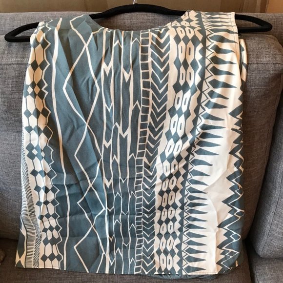 Lovely blue with cream geometric pattern. Back has a twist with more of the same pattern. Purchased from Anthropologie.