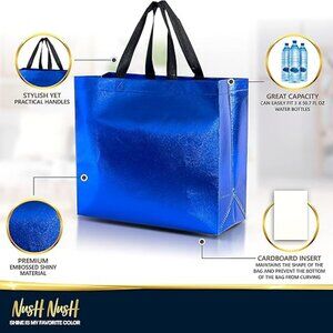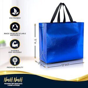 Blue Gift Bags Large Size – Set of 12 Shiny Blue Reusable Gift Bags With Handles