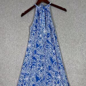 Blue Ginger Blue Floral Hawaiian Sleeveless Halter Neck Midi Dress Size XS