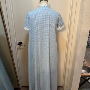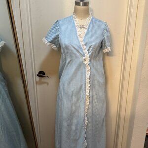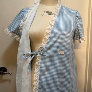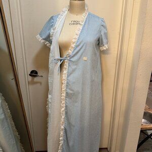 Blue Gingham Vintage Cotton Robe w/ eyelet trim