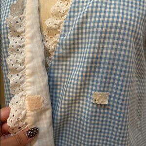 Vintage Blue Gingham Cotton Robe w/ eyelet Trim - small square velcro at closure w/ ties at side seam - robe is fully lined