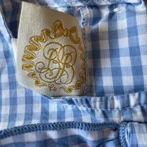 This is the Beatrice Blouse in Buckhead Blue. This features gingham, a bow st the front neck line, puff sleeves, buttons up the back, and tapered cuffs with just the cutest bit of ruffle. Rich with unique, charming, preppy details without being loud.