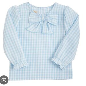 Charming blue gingham blouse featuring a stylish bow. Perfect for casual outings.