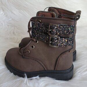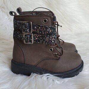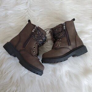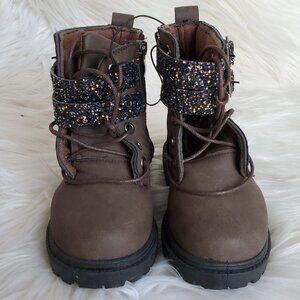 Blue Girls' Brown Glitter Strap Zip Lace Boots SZ 6