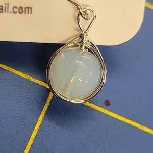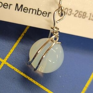 Blue Glass Bead w Silver Accent Dangle Earrings