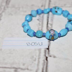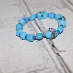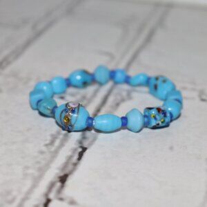 Blue glass and ceramic beads · Elastic fit · NWOT · 7" length