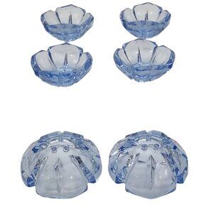 Blue Glass Flower Cupped Buttons, Set Of 6