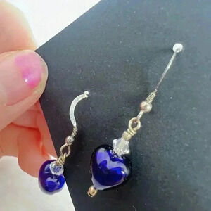 Key Words: glass bead earrings, blue heart earrings, handmade earrings