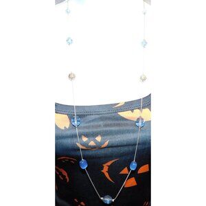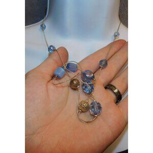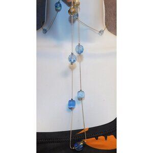 This stunning blue glass station necklace features vibrant glass beads on a silver-tone chain, perfect for adding a pop of color to any outfit. Ideal for casual or formal occasions.