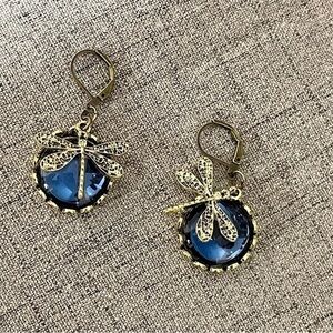 Blue Vintage Boho Dragonfly Dangle Drop Gemstone Earrings. Goldtone with blue glass stones. Vintage Bohemian style that’s perfect for summer or fall. Bundle to save! Great gift for yourself or friend. 1.3” long, .55” wide.