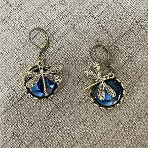 Blue Glass Vintage Boho Dragonfly Drop Earrings New