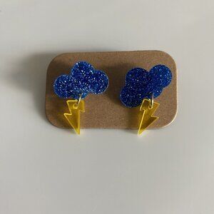 Blue Glitter Cloud Lightning Bolt Earrings - NEW!!