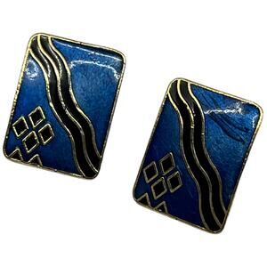 Blue, Gold & Black Enamel Post Earrings for Pierced Ears Retro 1980s Jewelry