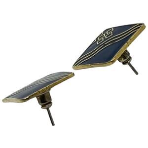 Add bold retro vibes to your jewelry collection with these vintage post earrings from the 1980s. Featuring a striking combination of blue, gold, and black enamel on a metal base, these earrings are perfect for pierced ears. Their geometric design and vibrant color palette make them a statement piece ideal for both casual and formal outfits. Lightweight and easy to wear, these earrings are a must-have for lovers of vintage and retro fashion.
