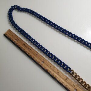 Blue Gold Tone Chain Link Statement Necklace 30 Inch Length Bold Two Tone Design