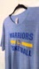 Casual blue t-shirt with Warriors Basketball graphic. Features bold yellow and blue lettering.