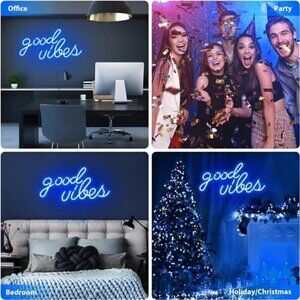 Blue Good Vibes Neon Sign LED Wall Decor Light Bedroom Wall (16.1 x 8.3 inch)