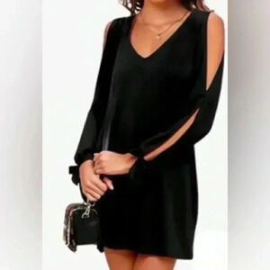 Long sleeves that tie and split at the bottom. The first picture shows how the sleeves and dress look.