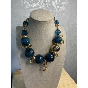 Blue Graduated Round Beads Gold Tone Spacers Necklace