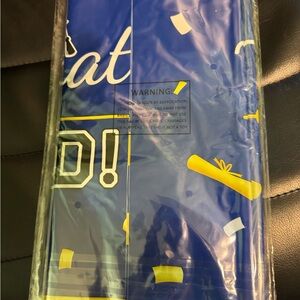 Set of blue tablecloths with graduation theme. Perfect for celebrations. Childom Tablecloths for Rectangle Tables 3 Pack 54" X 108" Graduation Blue Gold New blue and gold graduation table cloths! 3 pack and never opened! Smoke free home! Thanks for looking and please check out my other items!!