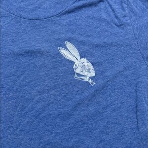 Casual blue t-shirt featuring a rabbit graphic on the chest. Perfect for everyday wear.