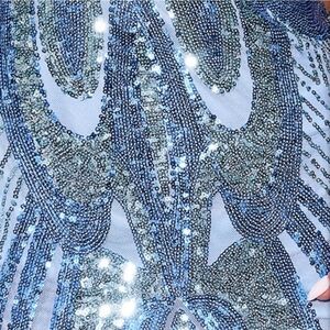 Blue, Graphic, V Neck, Sleeveless, Case Up Back, Sequined Mermaid Gown