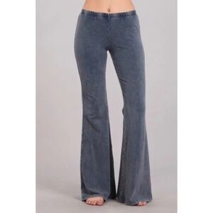 Blue Gray Boho Mineral Wash Flared Stretch Pants