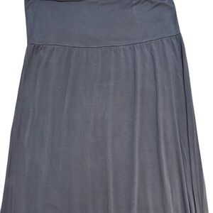 This elegant maxi skirt in a sophisticated blue-gray hue features a classic A-line silhouette with graceful pleats. Crafted from a soft, lightweight fabric, it offers a comfortable fit perfect for work settings. Its versatile design makes it easy to pair with a variety of tops and accessories.