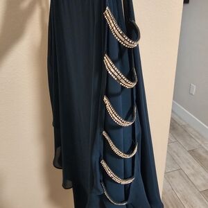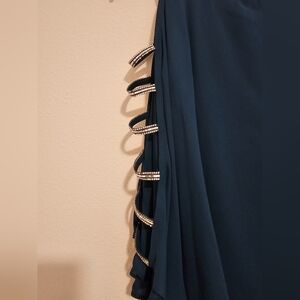 This stunning blue sundress features an asymmetrical design with cascading ruffles that add a playful touch. The sleeveless, spaghetti strap neckline makes it perfect for a cocktail party or a night out. Its lightweight fabric ensures comfort and elegance throughout the evening.