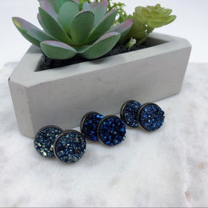 Blue Green Druzy Stone Studs