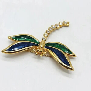 Blue Green Enamel Shiny Dragonfly Crystal Rhinestone Lovely Pin Brooch