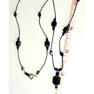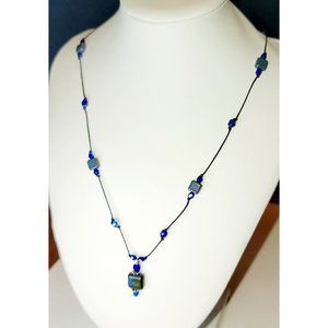 Blue Green Glass Bead Silver Accent Beaded Necklace Fashion Jewelry CT219