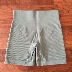Blue Green High-Waisted Bike Shorts with Seamless Ribbed Design