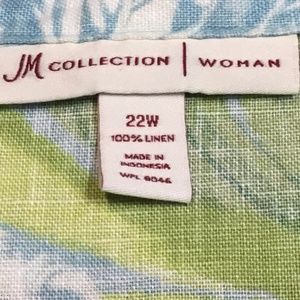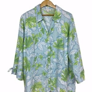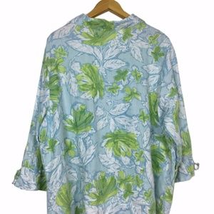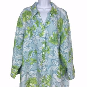 Blue Green Linen Tropical Print Top Blouse Sz 22W