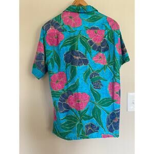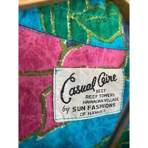 Blue Green Pink Purple Floral Vintage Sun Fashions Hawaii Aloha Vacation Shirt