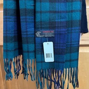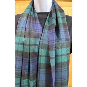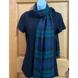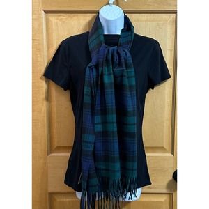 Blue Green Plaid Cashmere Feel Scarf W/Fringe