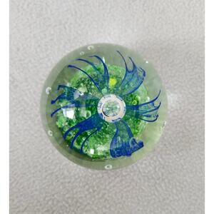 Blue Green Swirl Jellyfish Swirl Paper Weight Round Bubble