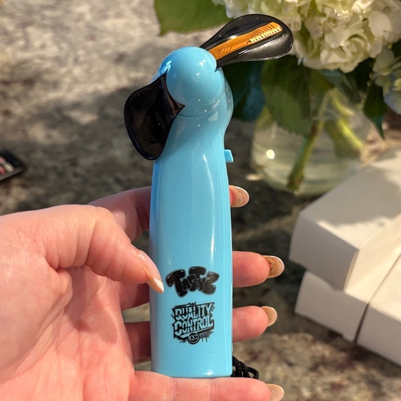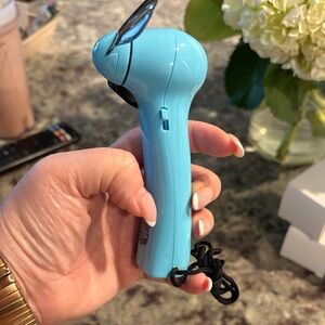 Experience a refreshing breeze with the sleek blue handheld fan from . Ideal for travel and outdoor activities.