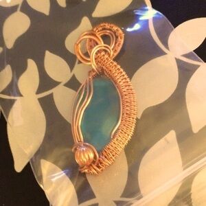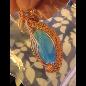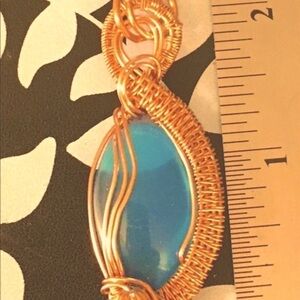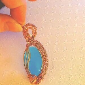Blue Handmade wrapped Chalcedony Stone in copper Artisian Handmade Pendant