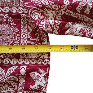 This Blue Hawaii Vintage Hawaiian Shirt is a stylish and colorful addition to any man's wardrobe. Made in the USA with a high-quality 100% cotton material, this button-up shirt features a collared neckline, short sleeves, and a regular fit. The shirt showcases a beautiful floral pattern with palm tree and turtle accents, perfect for travel, parties, or casual occasions during the summer, fall, or spring seasons. With a chest size of 44 inches and a size M, this shirt is machine washable and easy to care for.