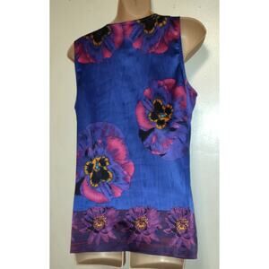 Blue Hawaiian Tank Top Sz 10 ECI New York Vintage Silky Look Floral Tropical 10