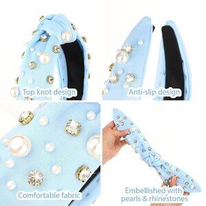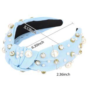 Blue Headband Pearl Knotted Headband Sparkly Rhinestone Pearls Top Knotted Headb