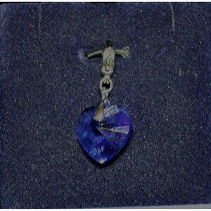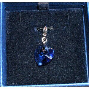A sophisticated blue heart-shaped Swarovski crystal pendant with a silver-tone bail, elegantly presented in a gift box for added refinement.