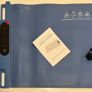 Blue heating pad with operation instructions and power cord. Ideal for warmth and comfort.