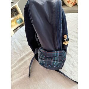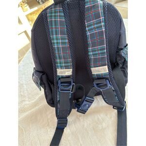 2 zippered large pockets, smaller button pocket in front. Padded back.