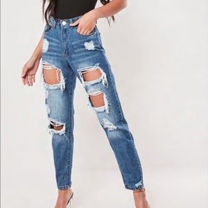 Blue High Rise Ripped Jeans..never worn…same exact ones as in the picture from Missguided. Size UK8…US4