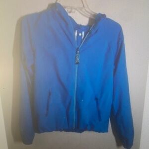 Stylish blue hooded jacket with zipper closure. Perfect for casual wear.