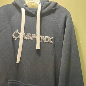 Blue Hooded Sweatshirt with White Drawstrings