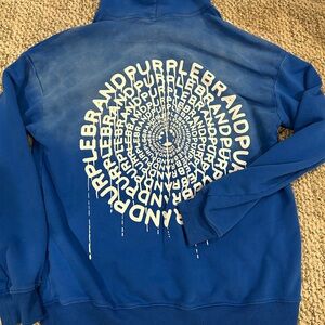 Mens designer "purple" blue hoodie with logo on the front. Comfortable and casual. Fits size L but is undersized at L