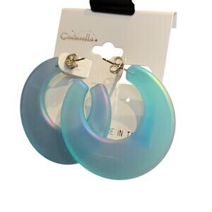 Acrylic hoop earrings measuring approximately 1.7 inches in diameter. Lightweight and great for casual or statement wear. Aurora Borealis (AB) look with a iridescent coating. Free black organza gift bag included.